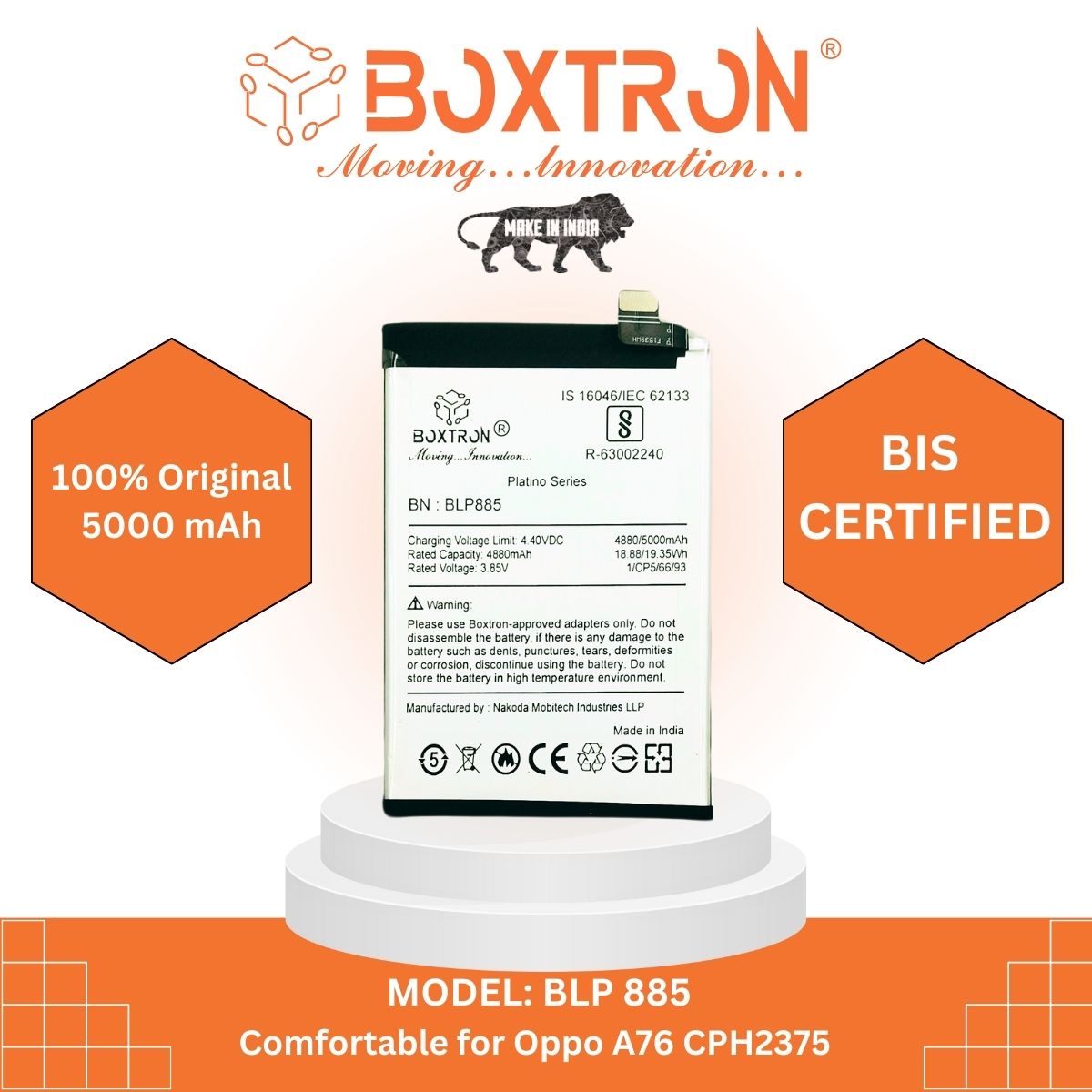 Boxtron BLP 885 battery Compatible with Oppo A76 / A96 - 5000 mAh battery capacity