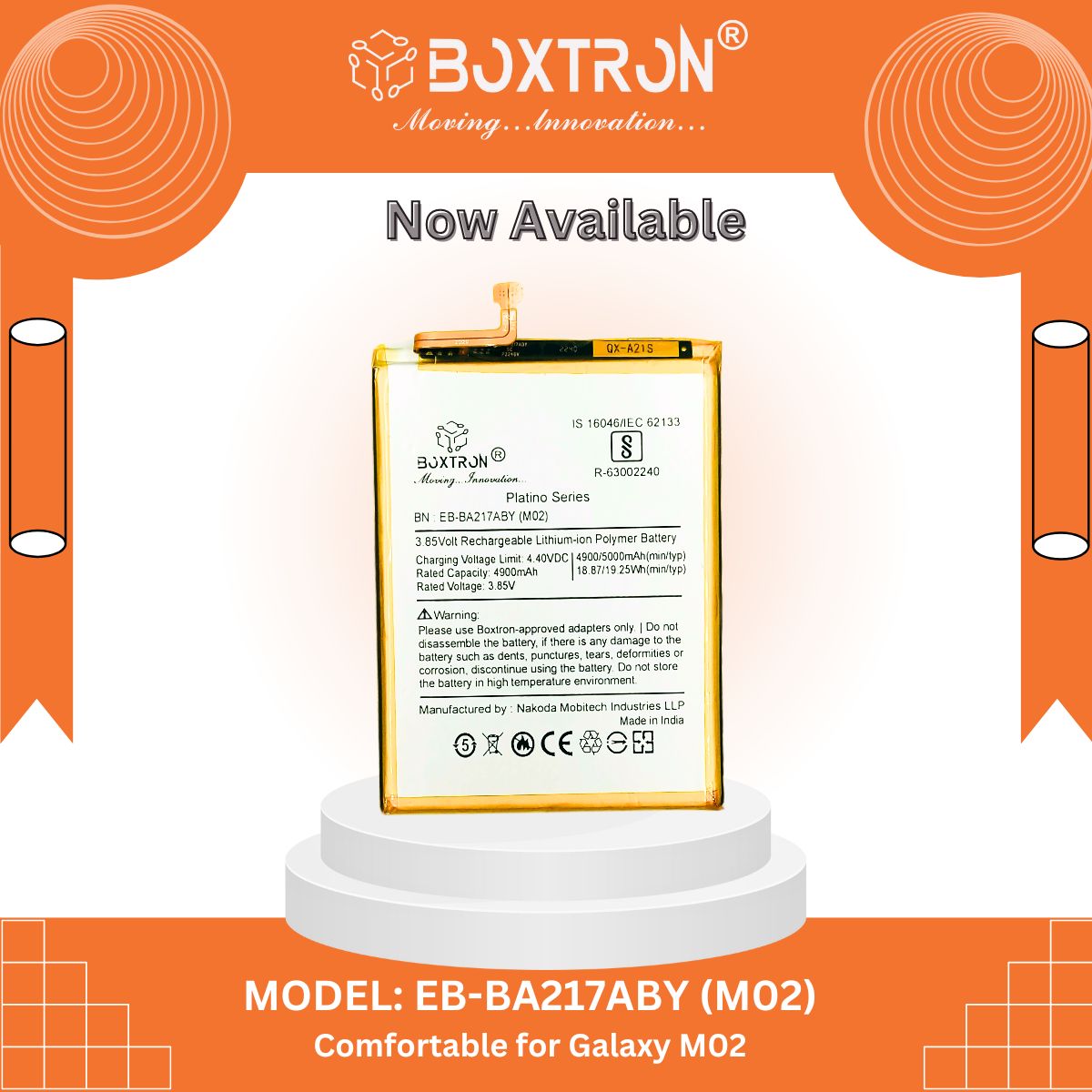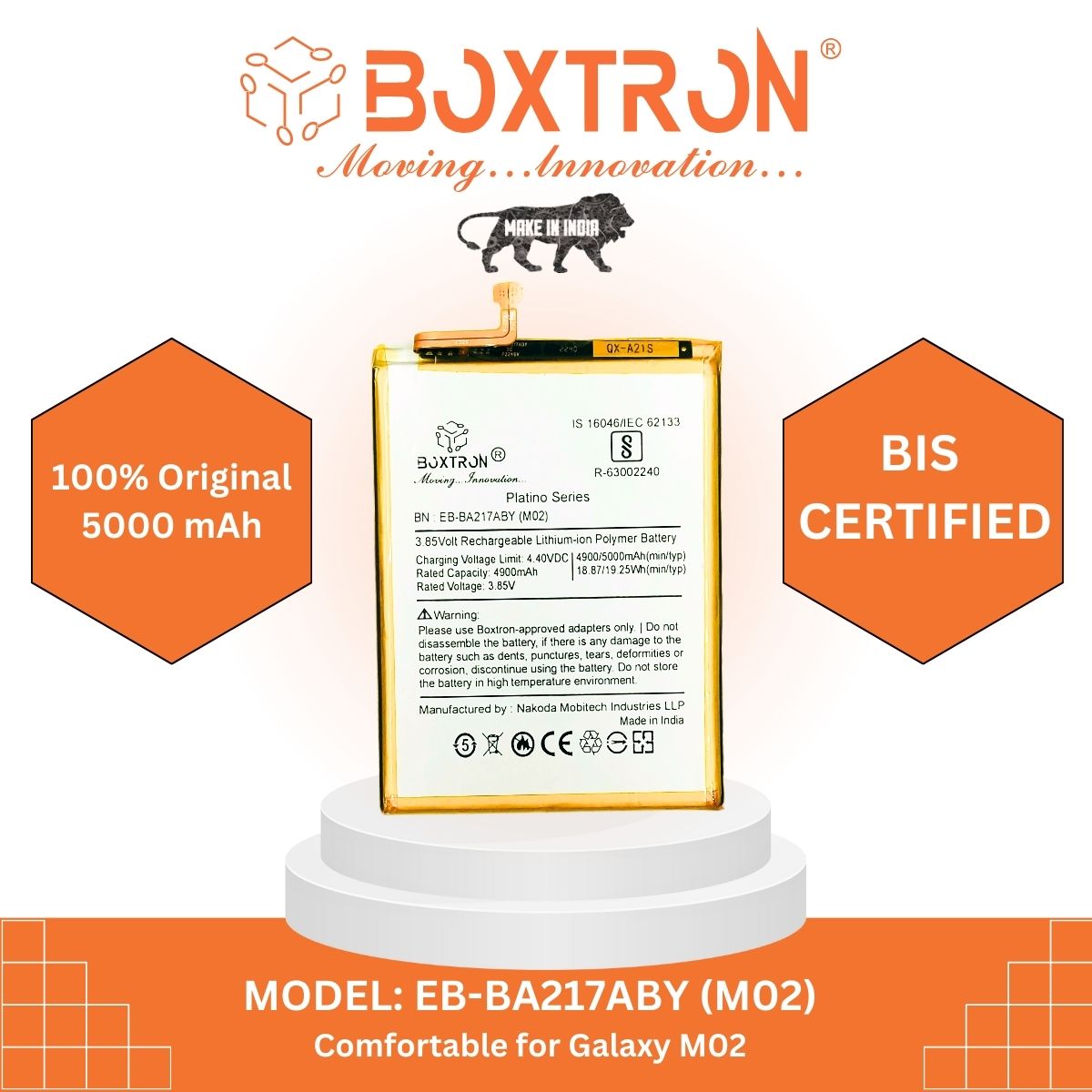 Boxtron EB-BA217ABY Battery Compatible for Samsung Galaxy M02 - 5000 mAh Battery Capacity