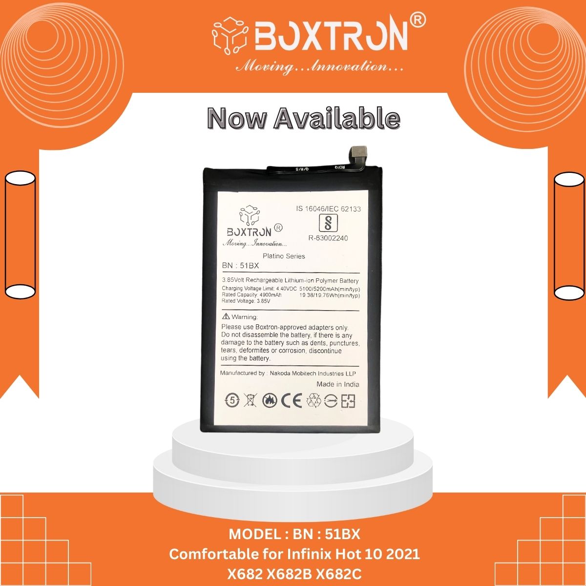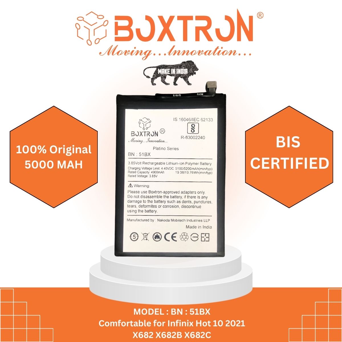 Boxtron BL-51BX Battery Compatible for Infinix Note 8 X692 / Note 8i X683 / Hot 10 - 5200mAh Battery Capacity