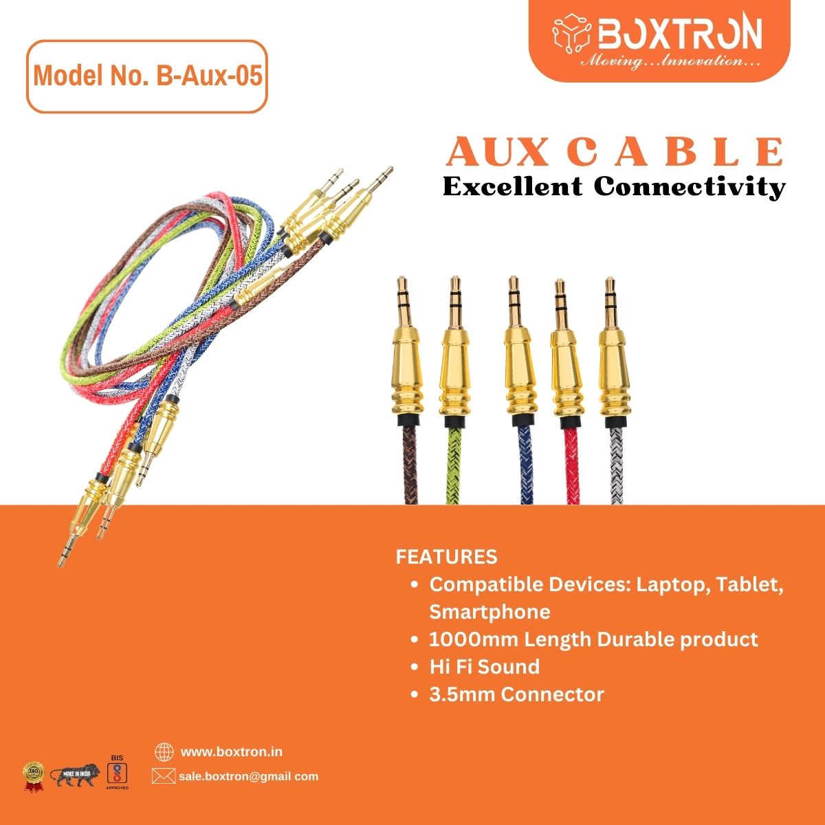 Boxtron Nylon Braided Aux-05 Audio Cable - 3.5 mm Gold Plated Jack Male to Male Tangle Free for Car Stereo, Speakers, Headphones.